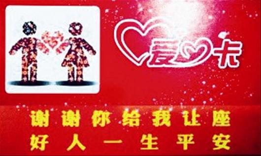 【武漢】女孩給老人讓座獲贈愛心卡