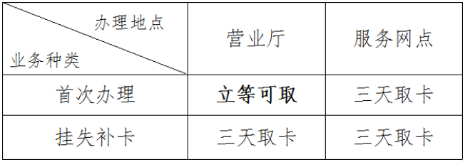 (2)非實(shí)名卡:任一服務(wù)網(wǎng)點(diǎn)直接辦理,無(wú)需證件,遺失不補(bǔ)。
