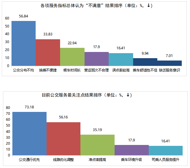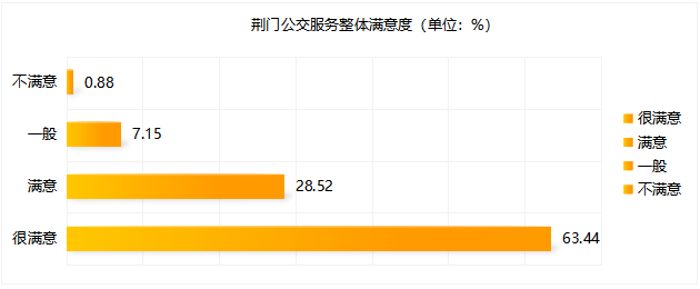 本次調(diào)查共收集有效問卷1471份,623條相關(guān)問題及建議。問卷涵蓋公交線網(wǎng)優(yōu)化、文明服務(wù)、換乘便捷度、候車時(shí)間、乘車舒適度、智能信息建設(shè)等多方面內(nèi)容。調(diào)查顯示,參與投票人群年齡結(jié)構(gòu)主要集中在18~59歲,其中以40~59歲為主體。(一)公交服務(wù)滿意度指標(biāo)及數(shù)值根據(jù)交通運(yùn)輸部GB/T 36953.2-2018城市公共交通乘客滿意度評(píng)價(jià)方法,公共交通乘客滿意度指乘客對(duì)公共交通服務(wù)質(zhì)量的滿意程度,評(píng)價(jià)程度設(shè)置為“很滿意”、“滿意”、“一般”與“不滿意”。問卷顯示荊門公交服務(wù)整體滿意度為91.96%。問卷顯示公交線網(wǎng)分布不均、線路不合理、換乘不便捷為主要服務(wù)訴求,公交線路分布不均為“不滿意度”投票最高問題;主干道公交優(yōu)先通行權(quán)為服務(wù)訴求投票最高關(guān)注點(diǎn)。 此次問卷調(diào)查,感謝廣大市民乘客的積極參與,市公交集團(tuán)將結(jié)合實(shí)際,認(rèn)真聽取、采納乘客提出的意見及建議,予以改進(jìn): 關(guān)于線路運(yùn)營方面,對(duì)5路線(圣境山—?;郏?、88路線(東寶碧桂園—楊家橋)、58路線(碧桂園北—漳河新區(qū)政務(wù)中心)、59路線(荊楚理工學(xué)院—掇刀區(qū)政務(wù)中心)早中晚客流高峰期加密營運(yùn)班次和增設(shè)區(qū)間班次,對(duì)33路線(楚天學(xué)?!d化三路東)、69路線(雙喜小學(xué)—園博園東門)、13路線(牌樓—園博園西門)進(jìn)行線路優(yōu)化,方便沿線居民出行需求;近期擬開通碧桂園翡翠公館至長崗萬人社區(qū)、東寶政務(wù)中心至市政務(wù)中心公交線路,具體方案正逐步規(guī)劃中。