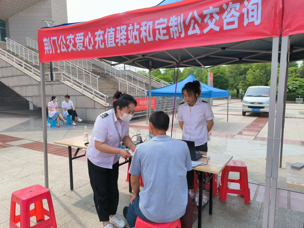 5月20日,荊門市殘疾人聯(lián)合會(huì)在荊門體育文化中心舉辦殘疾人專場(chǎng)招聘會(huì)。市公交集團(tuán)營(yíng)業(yè)中心組織工作人員在活動(dòng)現(xiàn)場(chǎng)設(shè)立臨時(shí)愛心充值驛站,為前來參加活動(dòng)的殘疾朋友和其它市民朋友分別提供愛心卡咨詢、信息登記、年審、掛失和公交IC卡新辦、充值、年審、掛失等服務(wù),同時(shí),積極宣傳推廣荊門公交微信公眾號(hào),方便市民查詢公交咨詢,體驗(yàn)實(shí)時(shí)公交,讓市民告別等車焦慮,從容出行。