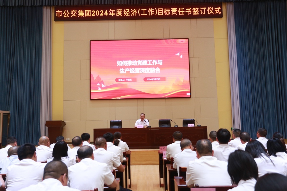 大會以2024年度經(jīng)濟(jì)(工作)目標(biāo)責(zé)任書的簽訂拉開序幕。隨后集團(tuán)黨委書記、董事長卞軍虎以《黨建融入生產(chǎn)經(jīng)營》為題,為集團(tuán)黨員干部進(jìn)行授課。