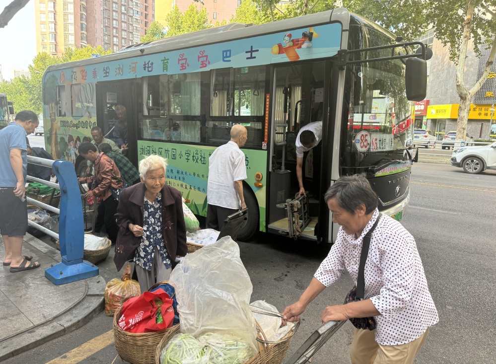 6時30分,石大娘趕到85路公交車始發(fā)站,她并不是最早一個,許多鄉(xiāng)親也正等待著“菜籃子”專車到來。