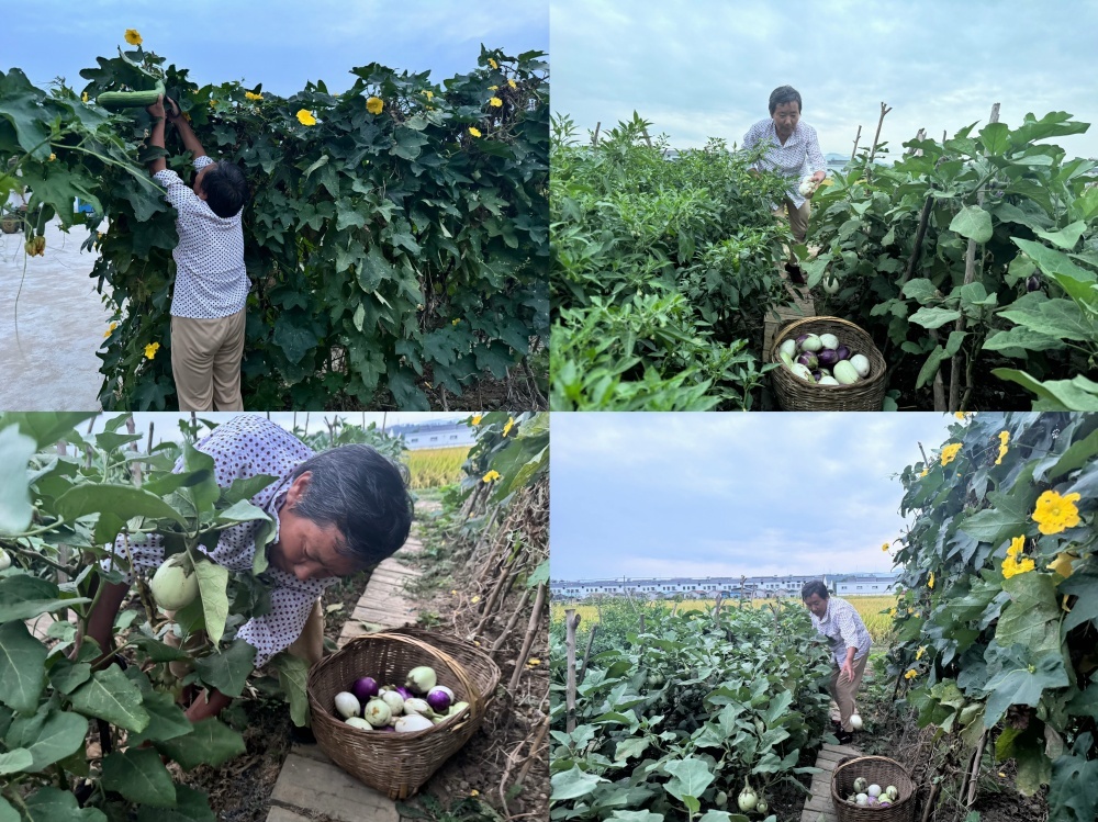 竹籃漸漸變得沉甸,被各樣蔬菜占滿,這些蔬菜將會成為餐桌上的一道道健康佳肴。