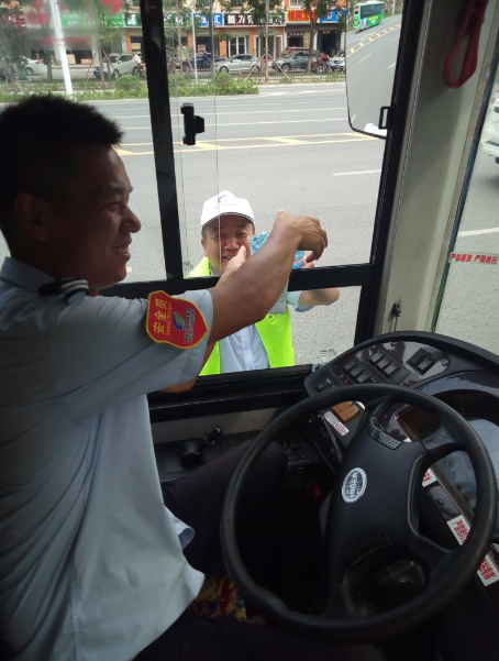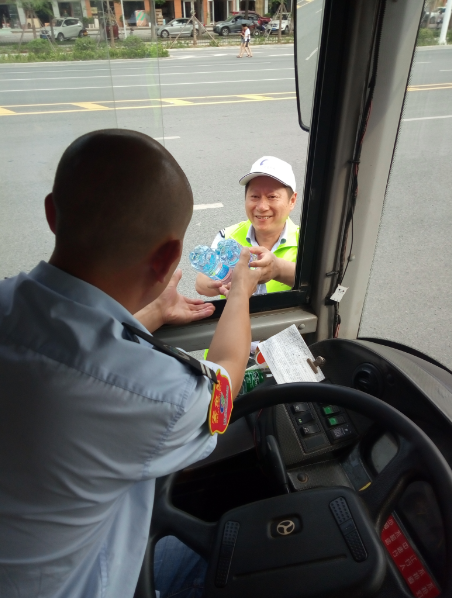“目前還有小部分線路的公交車是沒有空調(diào)的,就算夏天再熱也得堅持,現(xiàn)在天這么熱,一天下來衣服都不知道要濕多少次。今天有他們給我們送來的礦泉水,讓我們司機在這夏日里體會到了一絲清涼,真的很感謝他們。有了他們的支持和理解,我們更要做好本職工作?!惫患瘓F工作人員說。